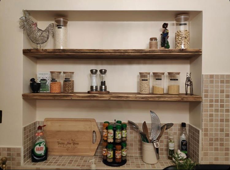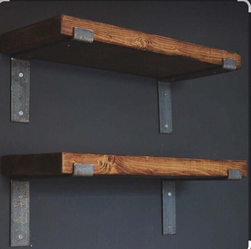 2 x 150cm Long Rustic Scaffold Board Shelves in Medium Oak